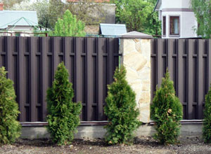 Забор из штакетника (забор из штакетин, штакетный забор) применяют для ограждения частных домов, коттеджей, офисных сооружений и др. аналогичных объектов. Секции ограждения штакетного забора состоят из горизонтальных лаг и металлических штакетин. Штакетины имеют высокую прочность, так как изготавливаются путем специального профилирования.